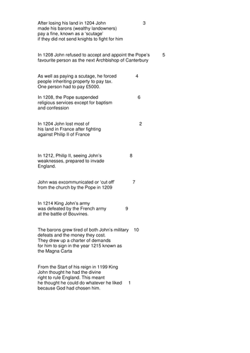 Why Did The Barons Rebel Against King John Teaching Resources